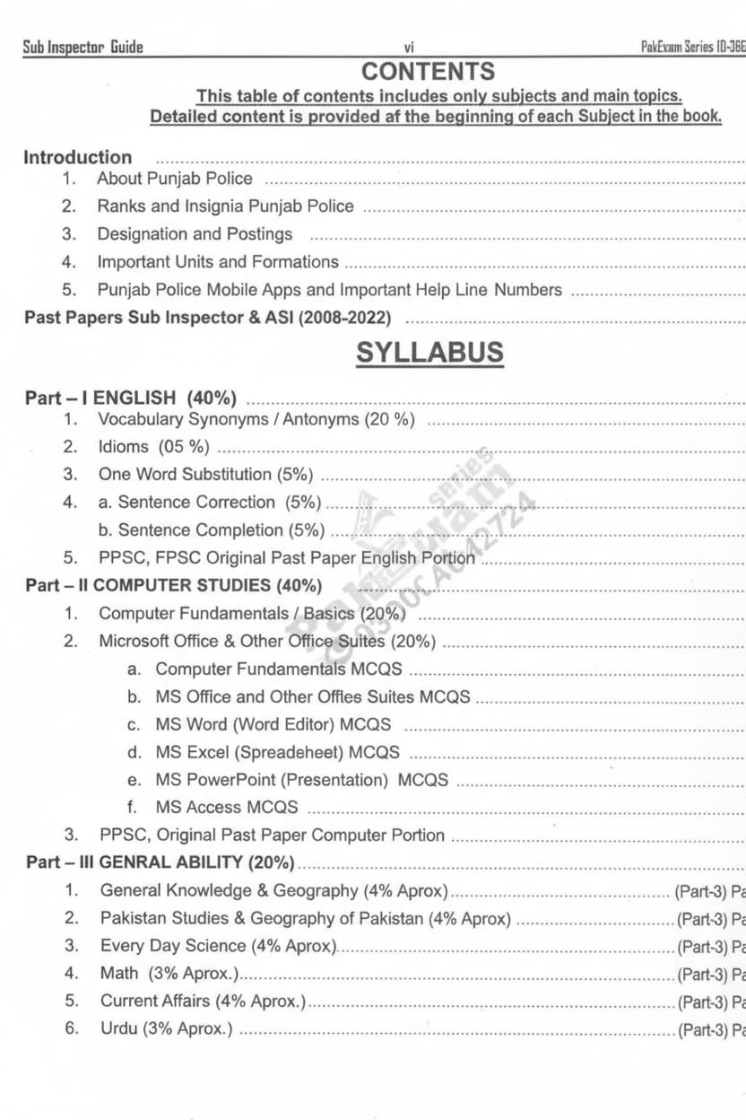 Pak Exam Punjab Police Sub Inspector Guide Open Merit Shafqat Rasool (4th Edition)